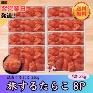 形は悪くたって味はお墨付き。製造過程で大きく切れた「旅するたらこ」のきれこをたっぷり詰めました。
